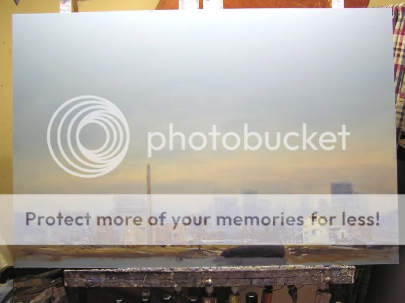 P.S. the top of the chimney was tidied up with more blue and pink around its edges and some sky colour brushed over it as before in the buildings.