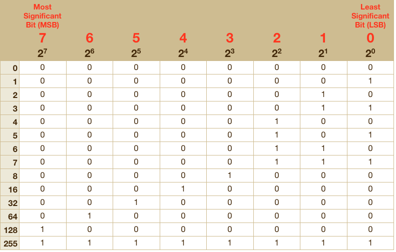 Decimal 6 is represented by 00000110b (the b suffix indicates it is a binary number)
