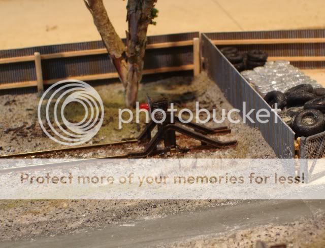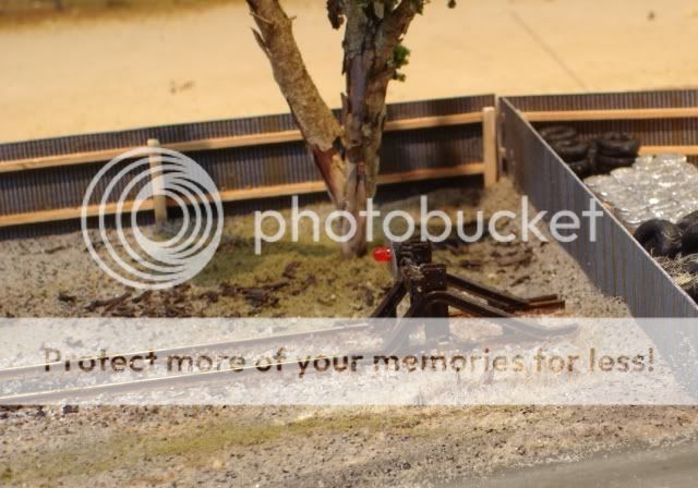 There are two tracks with buffer stops. Each has a bit of wonder cloth which has been painted and pastelled. Then the 60/40 PVA wicked into it and turned it into sticks.