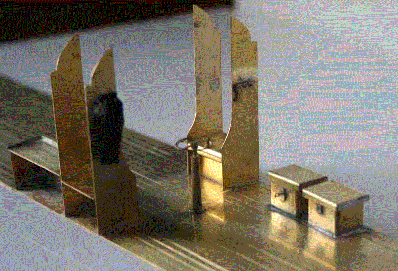 The long seat on one side is soldered in place, the one at the other side is screwed in from below allowing the floor and all the fittings to be fixed in after painting.