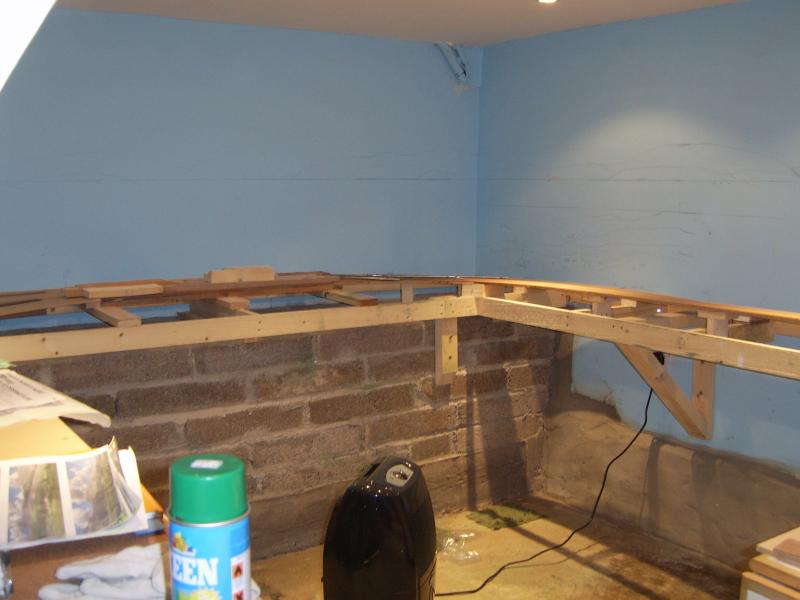 With the help of a neighbor who did building work I put in lights & slabbed the ceiling. I put 2" Kingspan type insulation on the walls & filled the hole in the floor. I borrowed on permanent loan :lol: 6' from another storage room & put up a partition wall. This gave me a room 23' x 9'.