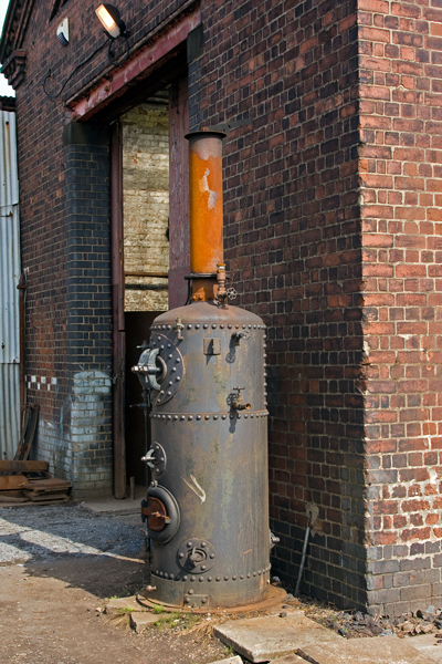 Works boiler outside a maintenance shed.