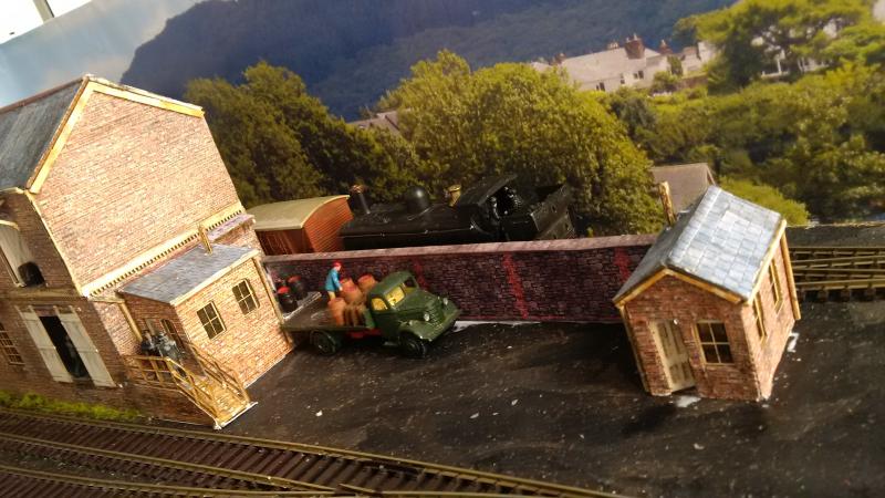 The gatehouse is now complete (a relic from the building's days as a tobacco warehouse). Yard surface and lamps to complete as well as scenics and lots of barrels … oh yes and the driver's days as a redhead are numbered … its Saturday so its vino tinto later, have a good weekend all (since posting the images I've moved the manager's office drain pipe towards the steps away from the truck … before toto spots it)
