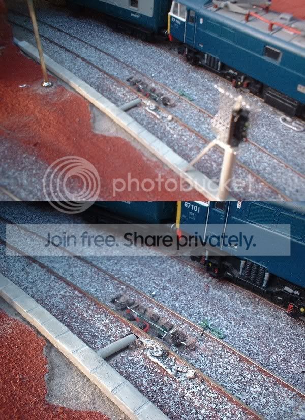 Part of the track base was chipped away to allow the signal assembly to be located…….