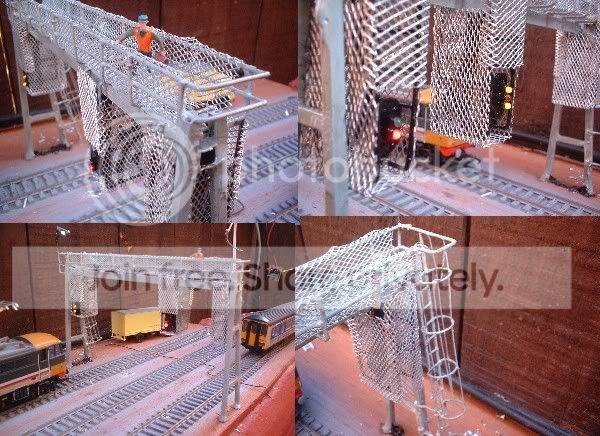 For the signal heads I came up with the simple idea of mounting the leds on some strip board then carefully cutting round with a mini drill. Once painted black they look ok. The mesh is from a car accessory shop and is usualy used for bodging car bodywork! The ladder was scratchbuilt from some brass rod. It was quite fiddly to solder the rungs on but well worth the effort. The safety hoops were again made from brass rod that was bent around a pen. Will stick some better pics up tomorrow.;-)