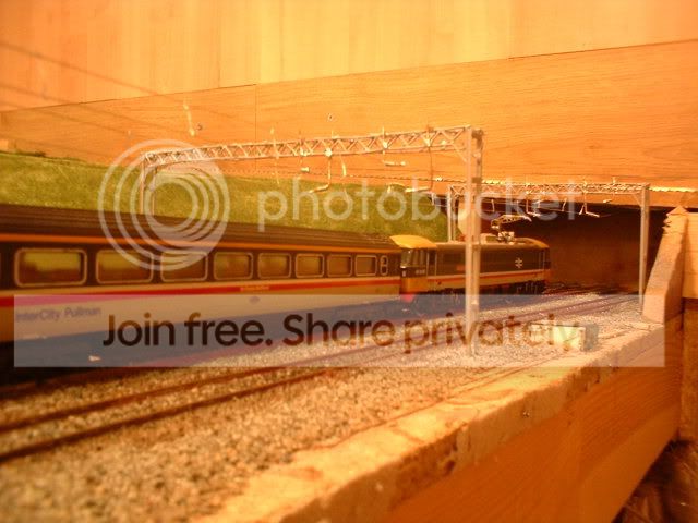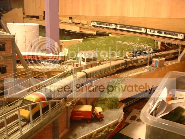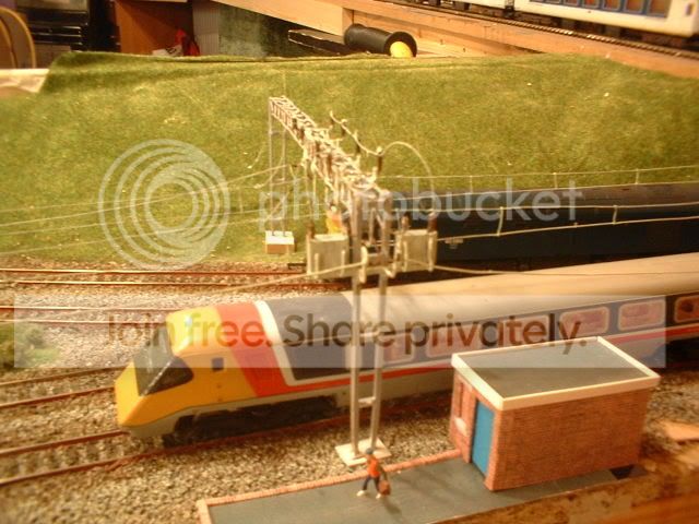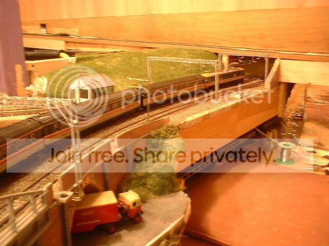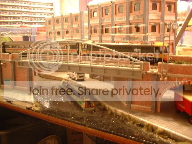 The warehouse is to close to the railway to get the post in where I need it so looking through some of my refrence books I decided to build one of these gantries. Another bonus of using this style is that the signal next to the signal box (got to build it yet!) will be more visable to the drivers. Once I get the whole area finished I might ask my dad to pop over and take some better pics as my camera dosen't realy capture the whole scene. The canal area now is starting to look like my home town Stoke-on-Trent. If only I could get the boat to look like the one my grandad had. Today the wires will be going up between the two overbridges. More later. ;-)