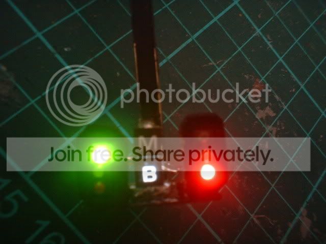 Now just to put thinks into perspective here the leds on the signals are 1.8mm dia! The display its self is no bigger than the top of a pencil. It uses 35 strands of plastic fiber optic tube and is made up of 5 rows of 7. The left hand row needs lifting slightly and some of the dots dont show up as well but close up it is definatly the letter M and the other is a B. I still have to paint it and add the back plates and mesh. It took somthing like 4 hours to get this far so it will be a one off!! :thud