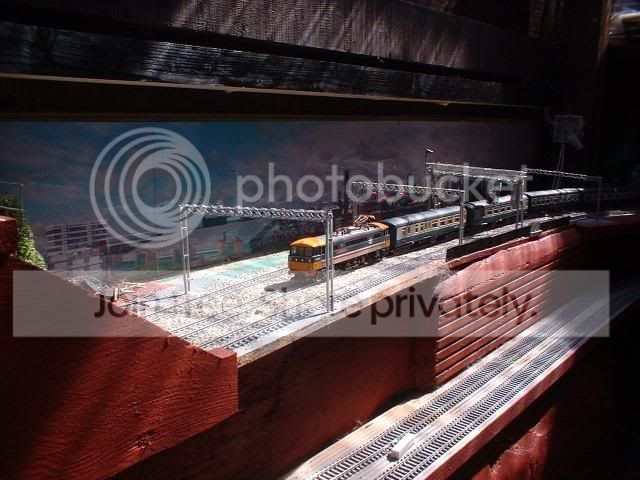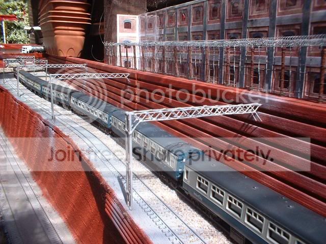 I have mentioned elseware about building a 'dolly' to mount a video camera on. A few years back I tried to get into producing videos of concerts, etc. At the time I was working as a cctv engineer and had designed and built a mobile video editing suite in a small flightcase. The system was based around a panasonic digital video mixer and a dvd recorder. The lid of the case had three small lcd monitors fitted for veiwing both video cameras and the record out. Camera 1 started life as a camera module in a cctv dome camera and was fitted to a standard camera tripod via two model servos. These were operated via radio control and worked realy well. This allowed the camera to be placed either on stage or at the far side of the hall. For camera 2 I used another old dome camera module. This one was complete with 360deg movement as well as tilt up/down. This was hardwired to a small handheld control box that I made and was usefull for getting diffrent camera angles as I could look at the stage and then spin it round to the audence. The trick was to fade from this camera to the radio controled one then spin it round before fading back. The last time I used the equipment I filmed a country and western concert. For the show I built a 10 foot long rig with a moving platform and mounted camera 2 on it. Anyway after much frustration I couldn't get the platform to move very well so it was scrapped. One upshot of this was I had used 00 flexitrack to mount the platform on and also to feed power/control signals. The platform ran on dapol dmu bogies and used five seperate lengths of track side by side giving me ten connections between the rig and camera. Upon scrapping the track formed the basis for the first section of garden railway. Anyway after digressing slightly I still have the wheels, etc for building a push along rig that can be positioned along side the track. This will give me some good shots of my electric locos running under the new OHLE.