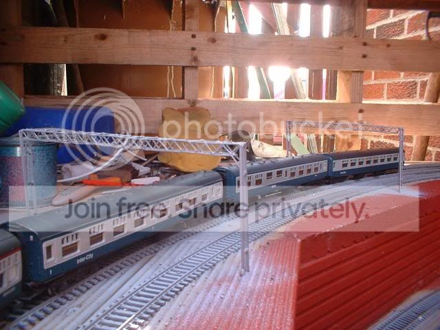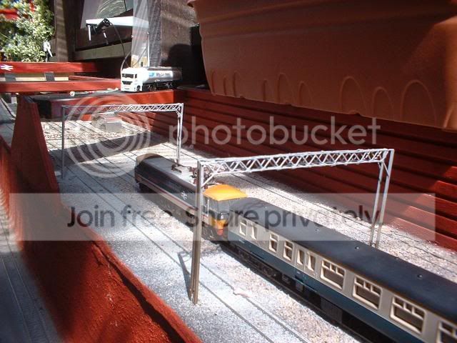 Next the two new gantries looking towards the garage. There is another to be added when I can source so more scrap rail for the posts..