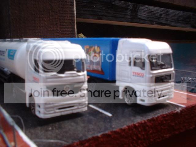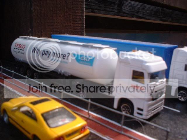 Now Phill these are for you. These are the tesco lorries I mentioned in your post about the tanker and for £1.50 each they are a bargan! The yellow merc is a cararama 50p charity shop…..