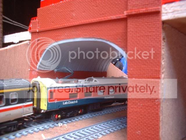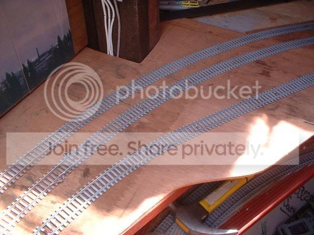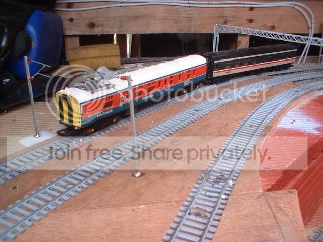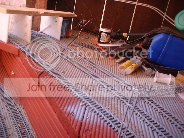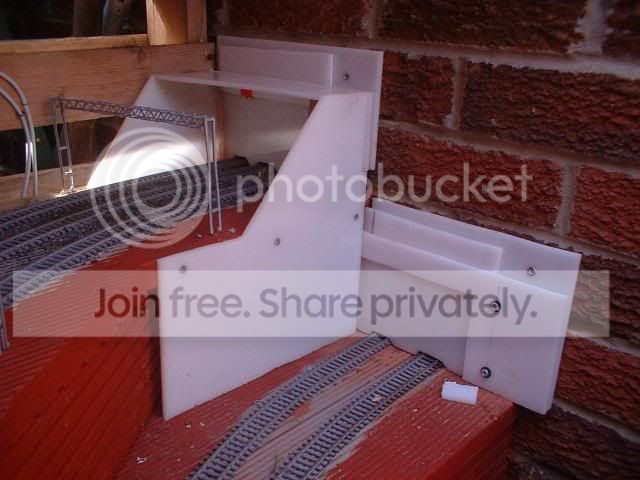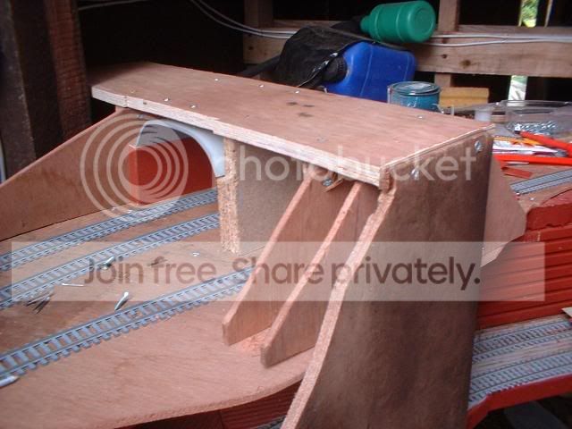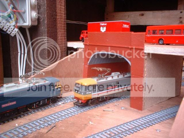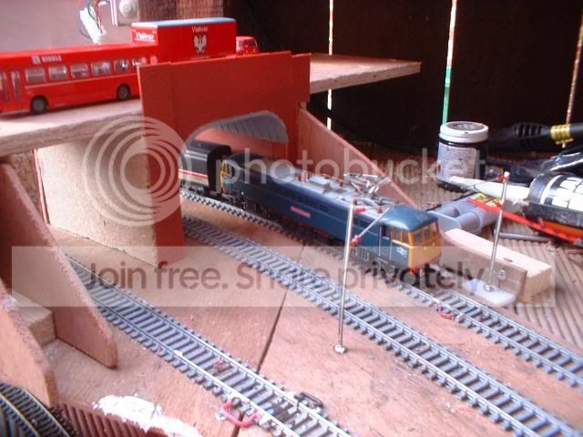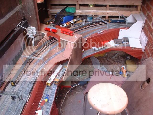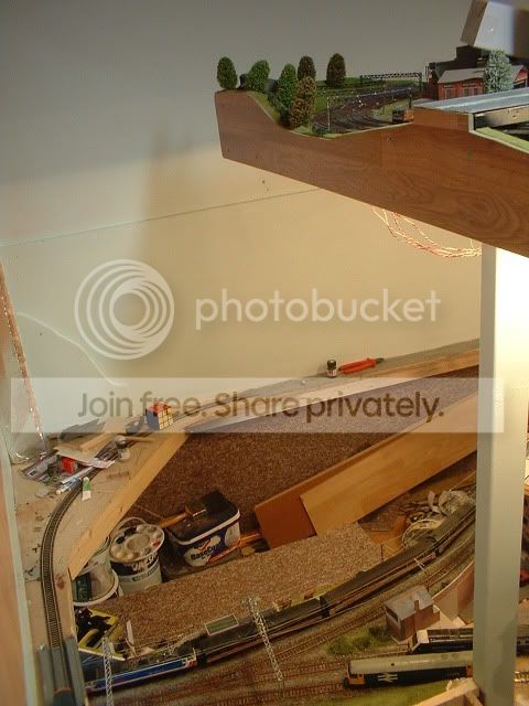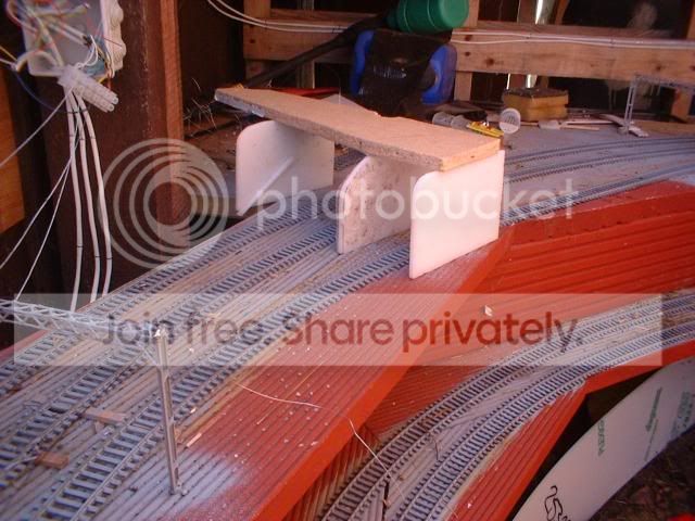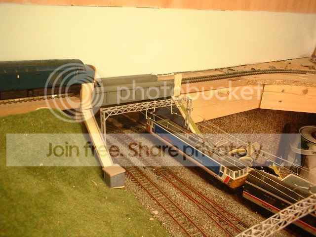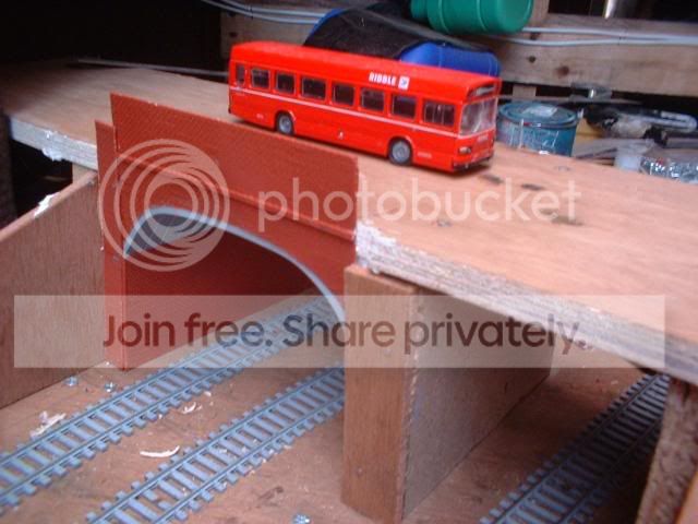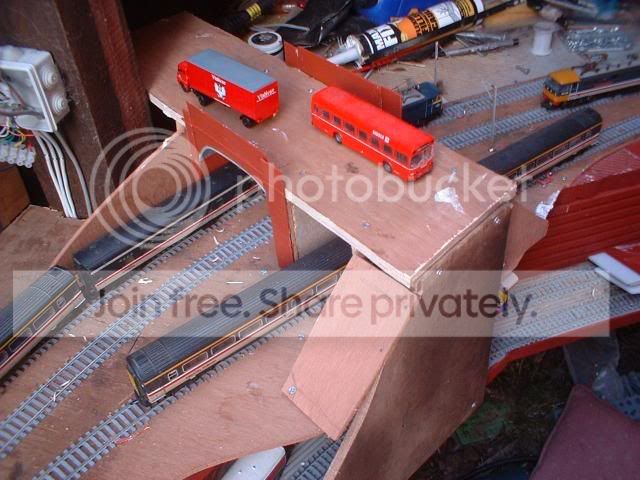Basicly its the point where the railway comes off the wall and turns to enter the garage. I always intended to build a bridge across here at some point so to get an idea I did a mock up…