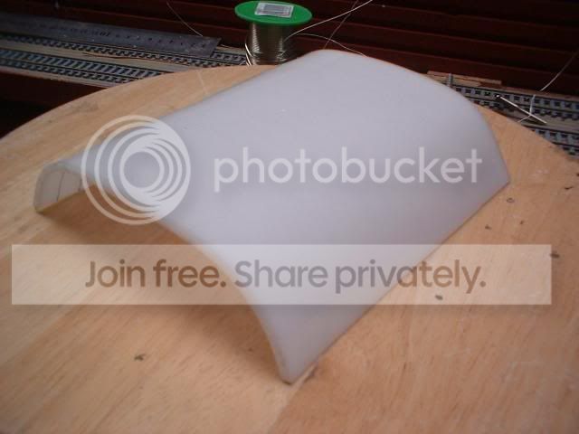 Now the fun part. I wanted the bridge to resemble an electrification rebuild with the distintive concrete arch. After some thought I came up with the following. First heat up some plexiglass sheet on the gas hob and bend to shape…