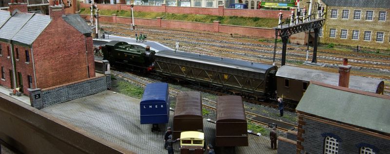 The vans in the dispatch siding have to be shunted across the main lines prior to the arrival of the Parcels train