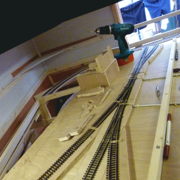 I will build my wee culvert and play around with the positioning to determine its exact location. I have reinstalled the plywood former along the long outside edge again but not ready to do any more with that until I've worked out a few more details. I'll be cutting down some thin ply from which to form a low level wall at the bottom of the embankment on the trackside.