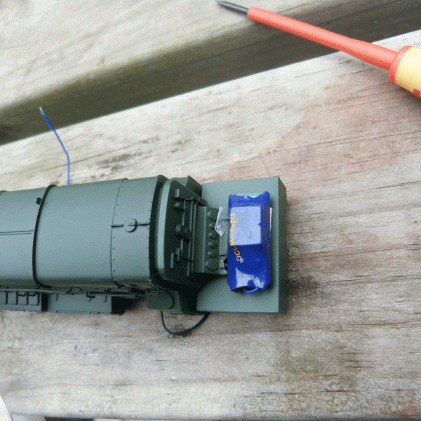 Above, another front on shot of the loco with the decoder fitted.