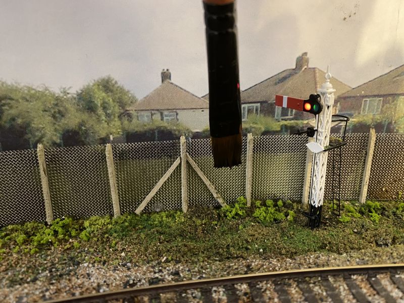 The posts, previously painted in Railmatch concrete beforeassembly and fitting, were then dry-brushed with the no.10.