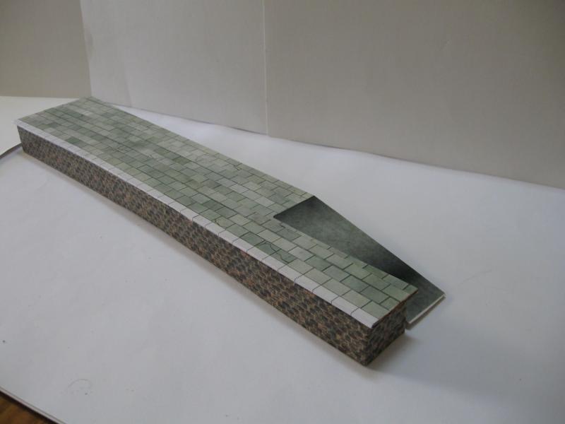 Using 2mm thick card, added edging as per Post #130 & then strips of Scalescenes platform slabs - had to be strips due to the curvature of the platform.