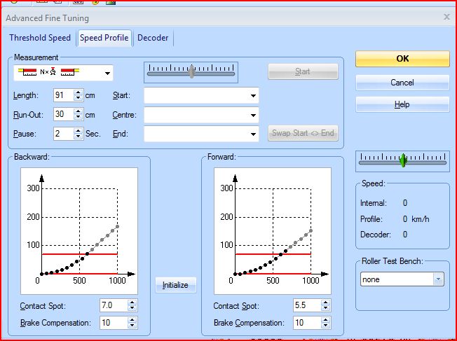 [user=450]wogga[/user] wrote:Just on loco profiling (like John i have been doing a fair bit recently) i have setup a special profiling track because my layout does not have enough length to do profiling, with my experience the run out track needs to be at least twice the length of the test track i.e. profile length is 1metre then the runouts either end need to be at least 2 metres each, this will allow the loco to accelerate and deaccelerate under its own control, anything less the loco is still accelerating into the test length and will give skewed results.