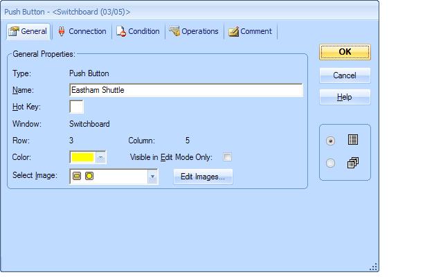 There are other options where you can connect to code from the DCC operation but for our purposes we just want a simple push button on our switchboard