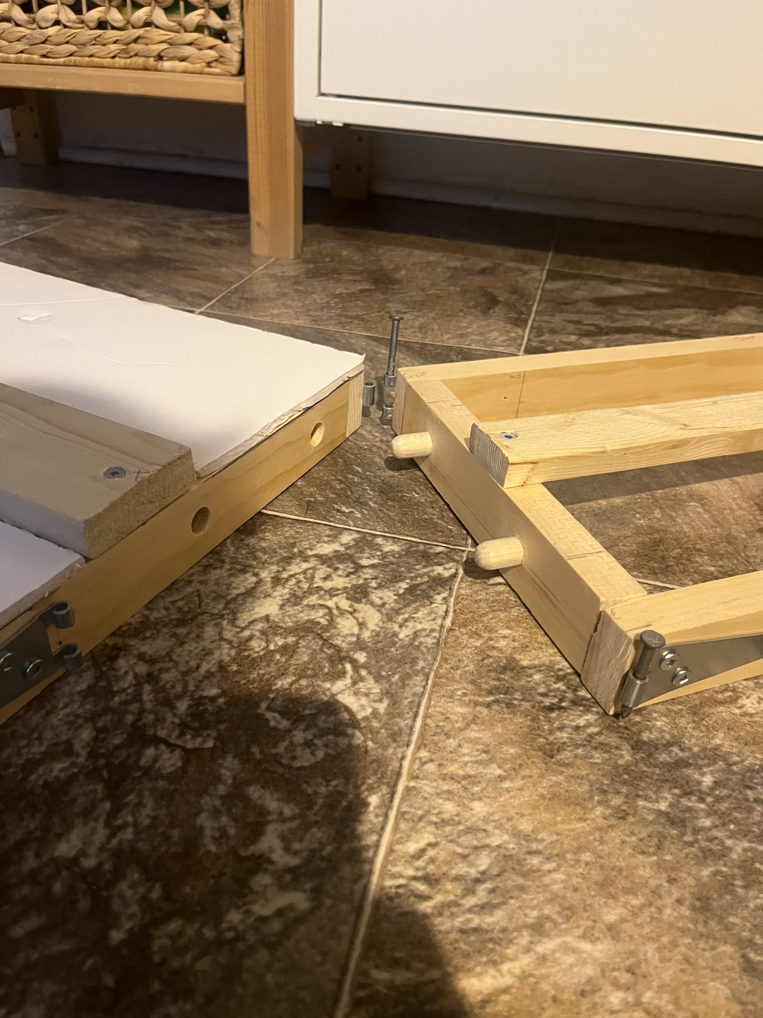 I may have missed this, what are those hinges for? If they are for location then half hinges are better. as are metal locating studs (as used by cabinet makers). Lee Valley should have both.