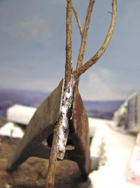 Twig in the centre has a thinner branch below thicker ones, so I snapped it off, leaving a nice stub, then glued it back on farther up.