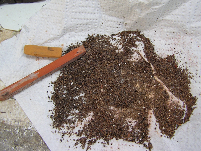 I decided they were too dark a brown, so I mixed in some powdered clay to lighten them [should have used chalk] as well as some powdered orangey-browns. All mixed together.