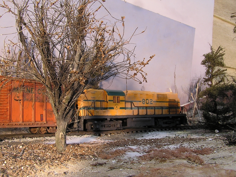 Excess trunk was trimmed off the bottom which was shaped into a point, then the tree was poked into the foam of the layout.