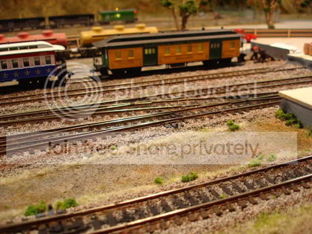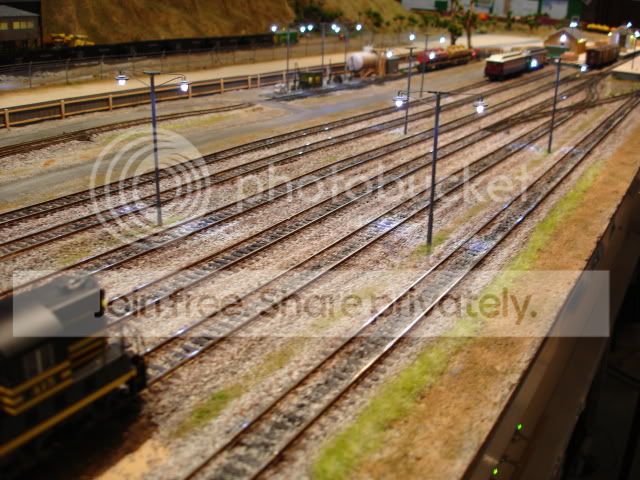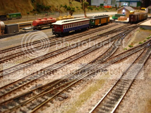Last time I tried to post this, I ended up disabling my access to the forum, so here's hoping this time. I spent yesterday (Sunday) sceneryising my yards. Over 14 metres of track and 8 turnouts. It took up some ballast and paint I have to say.
