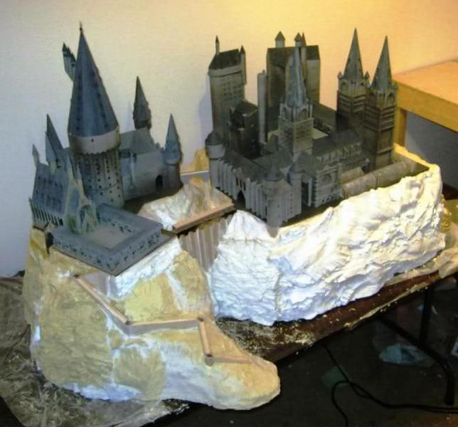 The Hogwarts castle modules were entirely scratchbuilt and the Hogsmeade Station modules were combination scratch, Hornby Skaledale and Bachmann structures with minor modification. I operate these with a large modular railway club that sets up at shows several times each year. I'm working on Hogsmeade Village now. My kids are more fans of the films and books than I am, but its a great subject to model. It also gives me good reason to expand my collection of British trains.