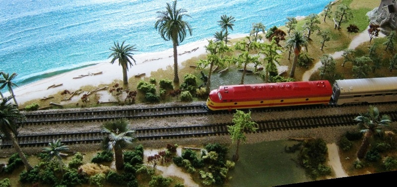 I used the same technique for a small 4 foot module depicting a beach on Biscayne Key just south of Miami, Florida. I was even able to sculpt a breaking wave with the caulk. I was really happy with the result: